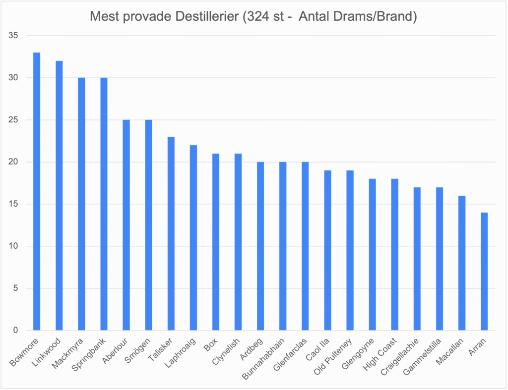 Provat över 1200 drams bestående av över 1000 olika whiskys från över 300 olika brands.